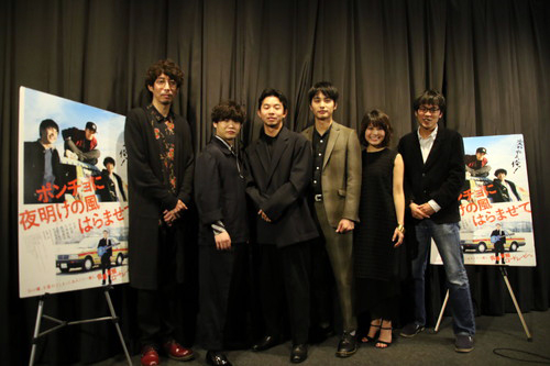 新鋭・廣原暁監督「ポンチョに夜明けの風はらませて」の初日舞台挨拶が行われ、太賀さん、中村蒼さん、矢本悠馬さん、佐津川愛美さんそして原作の早見先生と廣原監督が登壇しました!