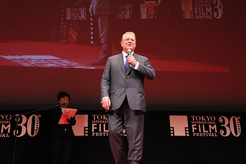 第30回東京国際映画祭を締めくくるクロージングセレモニーが行われ各賞の発表後に本映画祭初のクロージング作品に選出された『不都合な真実2:放置された地球』の上映が行われ、上映前にアル・ゴア(アメリカ元副大統領)が舞台挨拶を行いました。
