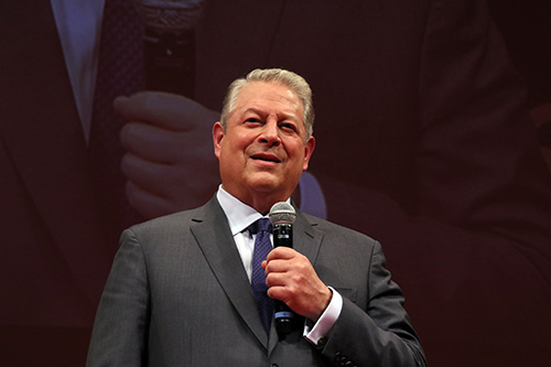 クロージングセレモニー後に『不都合な真実2:放置された地球』のクロージング上映の前に舞台挨拶が行われ ジョーンズ:53年間もの友情を築いてきた方であり、 映画界でも様々な賞を受賞された製作者であり、思慮深い方でもあります。そして今回多くの製作者のように続編をつくられました。ゴアさんに映画を語ってもらえたらと思います。 カモン、アル! という紹介があった後、アル・ゴアさんが登場! ジョーンズとゴアは、顔を合わすなり熱いハグと握手を交わすと会場は大きな拍手に包まれました。