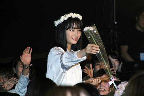 生田さん:すごく似合ってる!天使だね!(笑) と思わず笑みをこぼすと、広瀬さんは、白い衣装で来るように言われていたのに合点がいった様子。 最後に・・・ 生田さん:僕自身、久しぶりのラブストーリーだったのですが、それが久しぶりの三木監督との作品で。さらにすずちゃんにとっては初めてのラブストーリーということで、僕にとっても良い経験をさせていただけた気がしています。一生懸命愛情込めて作った作品なので、この映画をずっと好きになり続けて欲しいなと思います。 広瀬さん:本当にこの作品に出合えてすごく嬉しいです。そして多くの方に、恋する喜びや苦しさなど、色々な感情に出会って、何か背中を押してもらえる作品になってくれたらいいなと思います。 とそれぞれメッセージを送りました。 さらにイベントの最後では、来場者全員に、生田、そして広瀬が感謝の気持ちを込めて、ガーベラを手渡しでプレゼントするというサプライズも!大歓声に包まれながら、会場を後にしました。 |