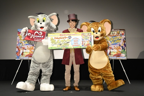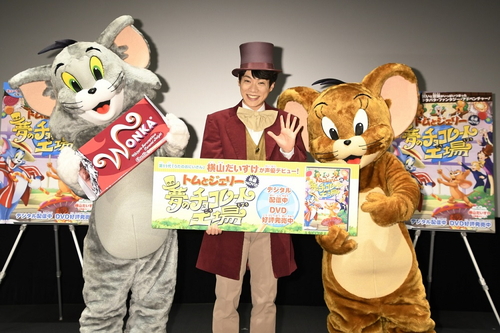 横山だいすけが声優に初挑戦した『トムとジェリー 夢のチョコレート工場』の DVD 発売記念 特別上映会が 19 日(日)、に て行われ、舞台挨拶に横山だいすけさんとトムさんとジェリーさんが登壇しました。