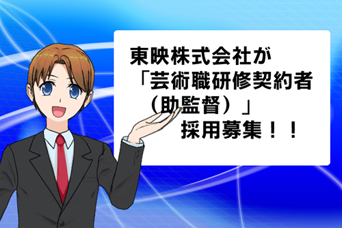 東映株式会社(本社:東京都中央区、社長:多田 憲之 以下、東映)では、「芸術職研修契約者(助監督)」採用を昨年に引き続き実施することが決定しました。