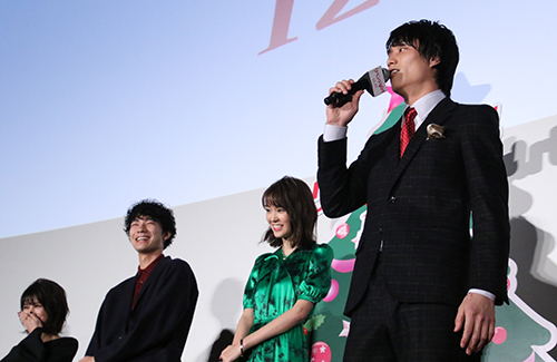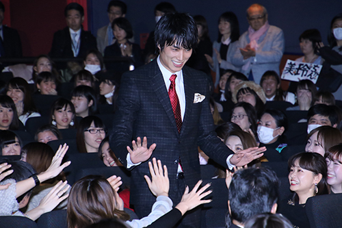 客席後方から現れたキャストと監督。![]() ![]() ハイタッチなどに対応した後ステージに! ![]() 桐谷さん:この作品。つい一ヶ月ちょっと前まで撮影していて、今日と言う日が迎えられてうれしく思っています。皆さんに観ていただくことドキドキしています。