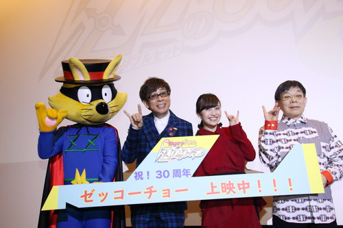 25日より全国公開中の『映画かいけつゾロリ ZZ(ダブルゼット)のひみつ』。 2週連続トップテン入りの快挙を達成、シリーズ過去最高のスタートとなりました! 12/9(土)に主人公ゾロリ役の山寺宏一、ゲスト声優の百田夏菜子(ももいろクローバーZ)が登壇して大ヒット御礼舞台挨拶が行われました! 日付:12月9日(土) |