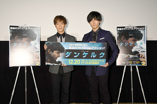 『ダンケルク』のブルーレイ&DVD リリースを記念して、劇場では 公開されていない日本語吹替版の試写会が 12月16日 (土)にの試写室にて開催され、メインキャ ストのトミー(フィオン・ホワイトヘッド)とアレックス(ハリー・スタ イルズ)の声を務めた小野賢章さんと増田俊樹さんが上映前のトークイベントに登壇した。