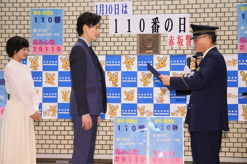この度、映画公開を記念して、1月10 日(水)=「伊藤(110)くんの日」であるということで、イベント3連発 その第一弾は 「110 番の日」でもあるとして、このたび岡田将生さんと木村文乃さんが赤坂警察署から“赤坂警察署 110 番の日広報宣伝大使に任命され、そのお披露目イベントが行われました! 映画『伊藤くん A to E』1 月 10 日=“伊藤くんの日” 110 番の日広報イベント |