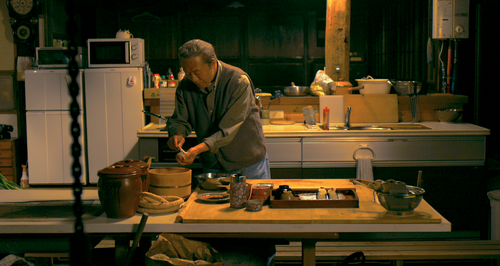 映像は、北王路魯山人や白洲次郎に愛された、京都の名店「平野とうふ」で修行、許されて生まれ故郷である豊田市でこだわりの「平野屋豆腐店」を営む主人公・島田勇作(小林稔侍)が、まだ夜も明けていない早朝から、日課である畑仕事に精を出した後、一つ一つ丁寧に豆腐作りを行う姿を捉えるところことからはじまる。 そして、今日の豆腐の出来を丁寧に確かめている最中、家の外から聞こえる大きなバイクのエンジン音。彼は妻を早くに亡くしたため、一人娘の志保 (壇蜜)と2人暮らしをしているのだが、その娘がこれからバイクに乗って「金沢に行く」という。 呆れながらも、自身の朝食の準備を始める勇作。 |