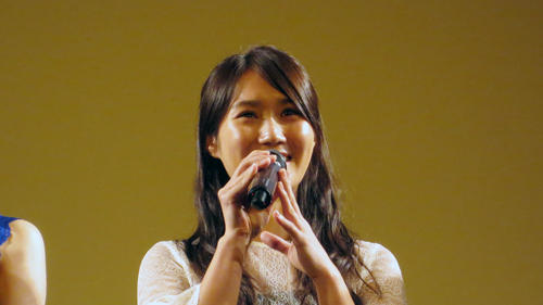 葉加瀬さん:忍者と言われた時、『忍たま乱太郎』のイメージだったので、ピンクの衣装だとか可愛い感じかなと思っていたら、クールで強い役でした。普段の私とは真逆です。 と話し、舞台挨拶がスタート。 |