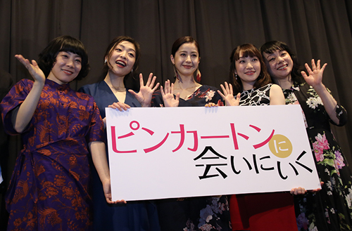 シャープかつオフ・ビートな“一度見たら癖になる”独特のユーモア・センスと“イタい”のになぜか胸が 熱くなる!? 坂下雄一郎監督待望の最新作『ピンカートンに会いにいく』。 1月20日(土)より新宿武蔵野館ほか全国順次公開となり、その公開を初日記念して“伝説の5人組アイドル=ピンカートン”の再結成時を演じた内田慈、松本若菜、山田真歩、水野小論、岩野未知と、坂下雄一郎監督による初日舞台挨拶が行われました。 日時:1月20日(土) |