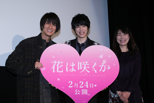 天野さん:キャストスタッフ一丸となって一生懸命作りました。今日は本当にありがとうございました。 渡邉さん:素晴らしい作品になっていると思います。二人の恋愛関係、そして皆が成長していく過程を楽しんでください。 『花は咲くか』