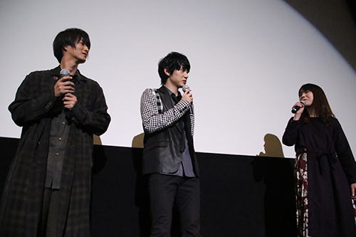 お気に入りのシーンを聞かれ、ネタバレないところで慎重に 渡邉さん:初めて桜井さん御家に行くシーン。コーヒーを挽く。その空気感が良いんです。 天野さん:僕は縁側のシーン。好きです。 谷本監督:予告でも使われている、林の中のキスシーン。これぞ蓉一と桜井さんのシーンなんです! と熱い監督! |