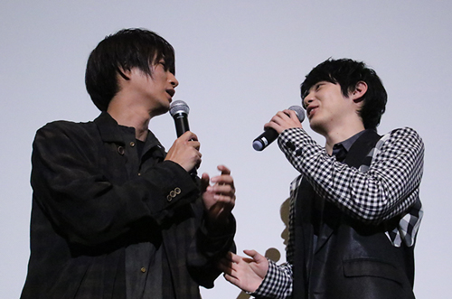 映画初主演の渡邉さんにオファーが来た時のことを尋ねると 谷本監督:渡邉君は本当に良い雰囲気を作ってくれてました。 と感謝を述べていました。お二人とも“初”BL作品ですよね!とMCに尋ねられると 渡邉さん:台本の段階はBLとわからなくて。桜井って女性だと・・でも読み返しているうちに。BLだと。でも、純粋に愛してるのはいいなと。抵抗なく役には入れました。 渡邉さん:役があまりしゃべらないし、行動もあまり変化がない。表現の幅が狭くて・・・その中でいかに感情を表すかが難しかったですね。僕もあまりしゃべらなかいのがカッコいいと思っていたので、最初に読んだ時から親近感がわきました。 と似ている部分もあると話します。