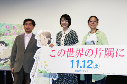 作成者: 映画情報どっとこむ 2016年9月9日2016年9月21日 か行/アニメ/ヒューマン/戦争/新着VIEW/舞台挨拶・記者会見 のんx片渕須直監督xこうの史代登壇『この世界の片隅に』完成披露 女優・のんさんが、主演すず役を演じている片渕須直監督・こうの史代原作のアニメーション映画『この世界の片隅に』は11月12日に全国公開となります。その完成を受け、のんさん、片渕須直監督、こうの史代先生の舞台挨拶付き完成披露試写会が行われました。 本作は 続きを読む 良かったらランキングUPにご協力ください。